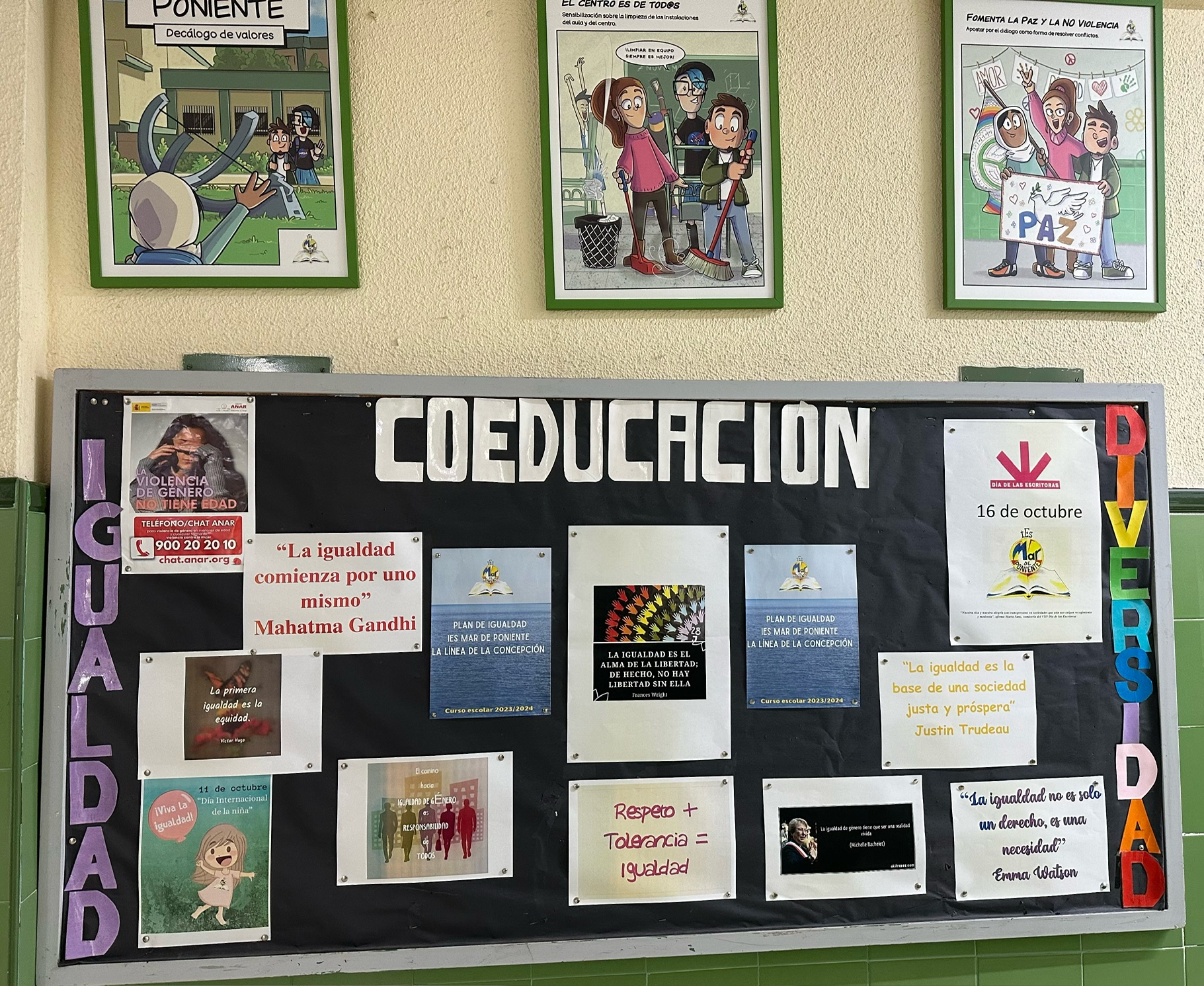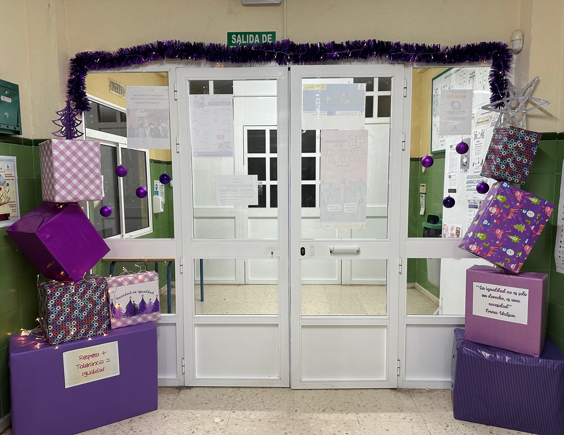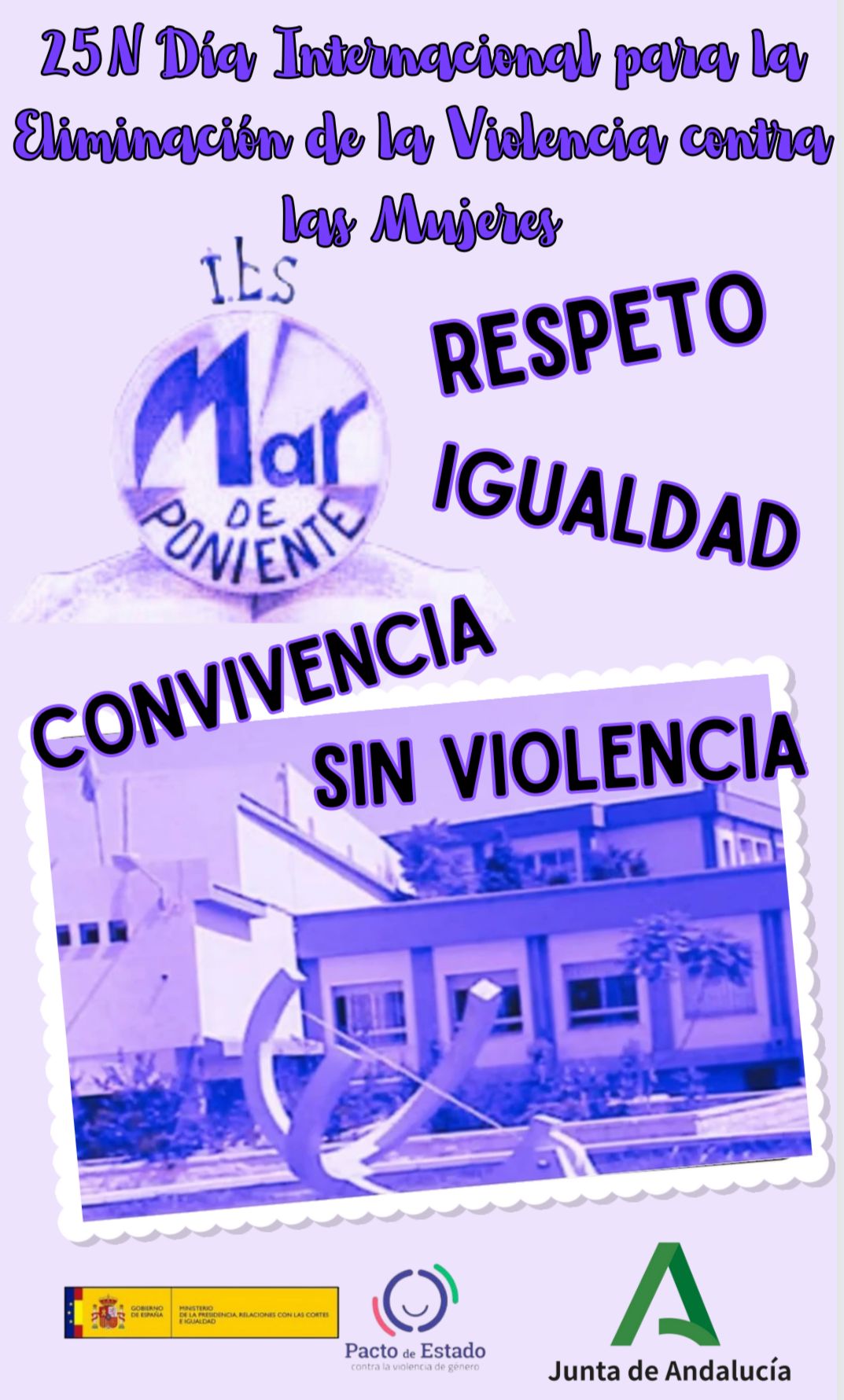 Además durante la mañana se presentaron y visualizaron tres cortos: de 3º PMAR, Camino Contigo, que además ha sido el único participante de la localidad en el I Concurso «Abre el plano» convocado por la Diputación de Cádiz, que pone en valor las relaciones positivas; el corto de 1º Bachillerato, Fingir hasta salir que plantea una reflexión sobre las distintas posiciones y opiniones de la violencia de género; por último ¿Con qué derecho…? del grupo de Coeducación, que pone el foco en las violencias machistas cotidianas. Queremos recordar que la violencia machista es un atentado contra los Derechos Humanos, qué solo este año han sido asesinadas 37 mujeres, desde 2003, 1.118 mujeres, desde 2013, 44 menores, y sobre todo, que hay violencias machistas que no se contabilizan, pero que son las que normalizadas pueden conducir al asesinato.