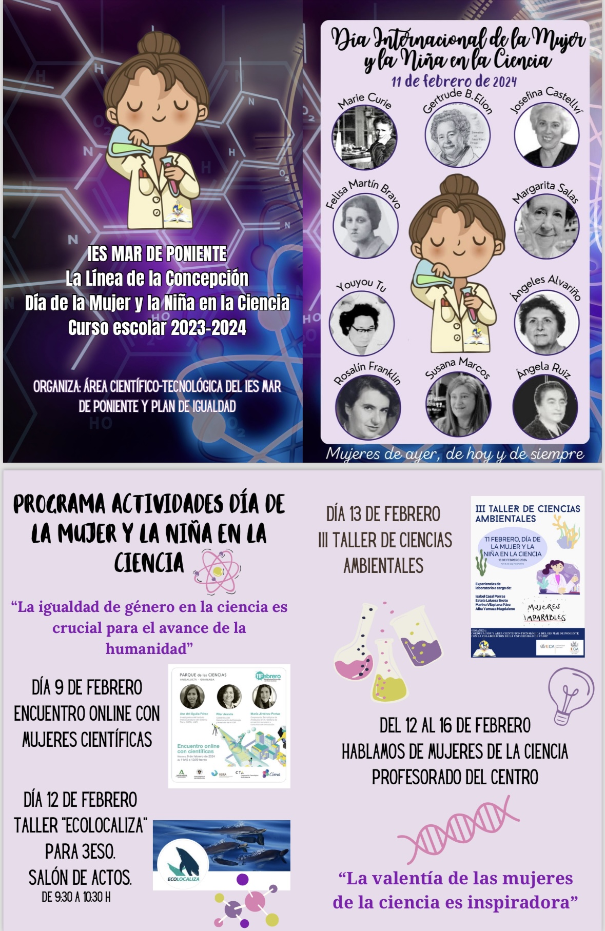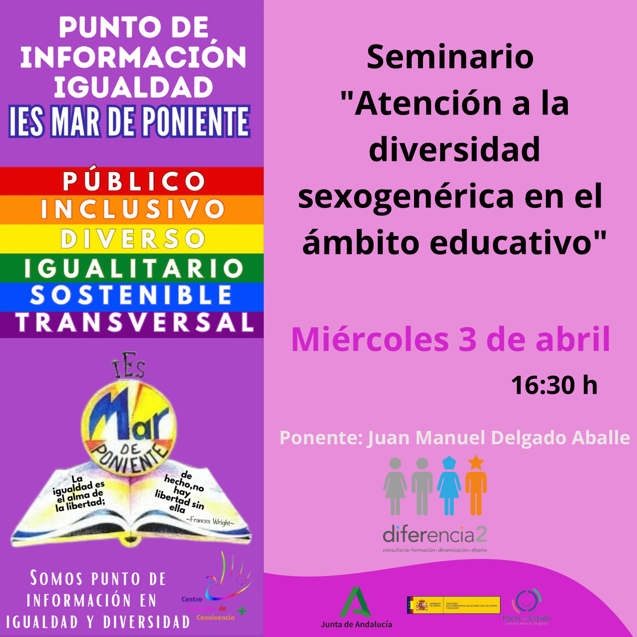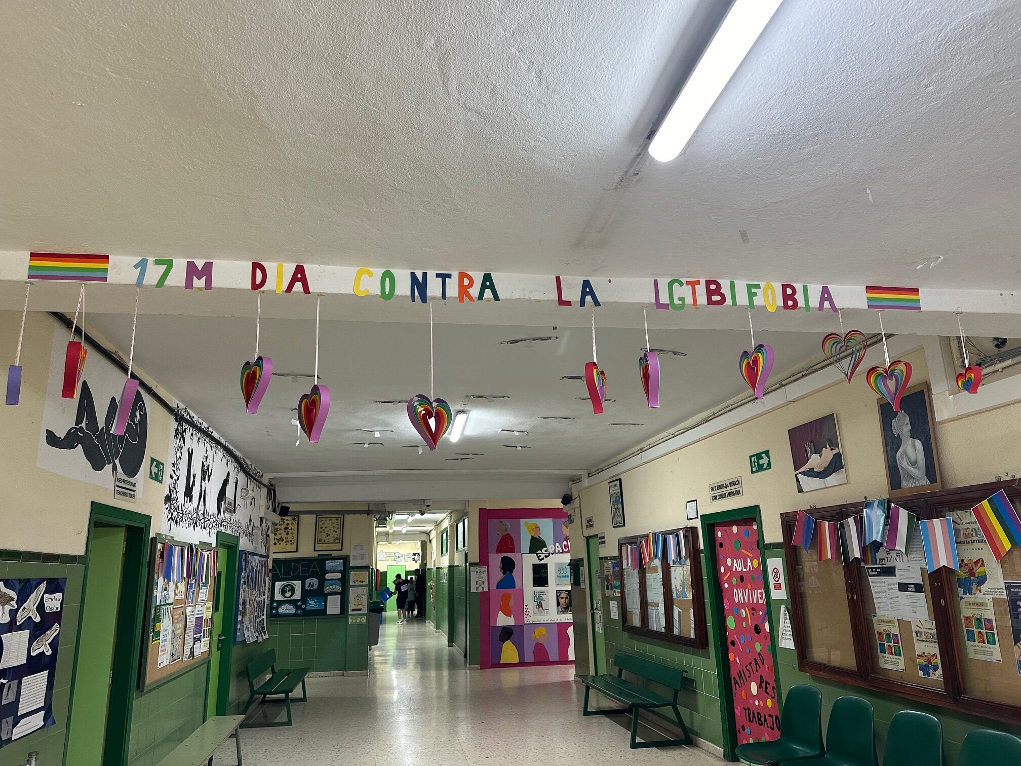 Además durante la mañana se presentaron y visualizaron tres cortos: de 3º PMAR, Camino Contigo, que además ha sido el único participante de la localidad en el I Concurso «Abre el plano» convocado por la Diputación de Cádiz, que pone en valor las relaciones positivas; el corto de 1º Bachillerato, Fingir hasta salir que plantea una reflexión sobre las distintas posiciones y opiniones de la violencia de género; por último ¿Con qué derecho…? del grupo de Coeducación, que pone el foco en las violencias machistas cotidianas. Queremos recordar que la violencia machista es un atentado contra los Derechos Humanos, qué solo este año han sido asesinadas 37 mujeres, desde 2003, 1.118 mujeres, desde 2013, 44 menores, y sobre todo, que hay violencias machistas que no se contabilizan, pero que son las que normalizadas pueden conducir al asesinato.